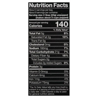 Gluten free. 100% Whole Grain: 27 g or more per serving. 100% of the grain is whole grain. WholeGrainsCouncil.org. Non GMO Project verified. nongmoproject.org. The better popcorn. Better taste. Better for you. Supporting pollinators. Better taste! Heritage black corn. Pops bright white. Fresh crispy. Crunch smaller kernels with richer popcorn taste. Better for you! Protective antioxidants. Virtually hulless. 100% natural. Non-GMO verified. Only 5 g fat/serving. Gluten-free. Grown on family farms. Chemical-free bag (no PFOA or PFAS). Better for all! We support pollinators for healthy ecosystems. BlackJewell.com. Facebook. Instagram. Questions or comments? Call (800) 948-2302. Product of USA.