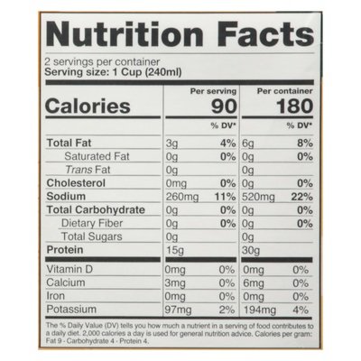15 g protein. 5.5 g collagen. Keto/paleo friendly. Satisfy: simply heat and serve for a hearty and filling meal any time you like. Savor: Mildly seasoned with garlic, turmeric, ginger, onions and bay leaves. Simmer: Use as a rich and flavorful alternative to stock or water in any recipe. Wholesome delicious and oh so easy. Our slow-simmered recipe unleashes all those mouthwatering bone broth flavors while delivering the hearty nourishing your whole body craves. Creator of the Bone Broth Lifestyle. drkeliyann-bonebroth.com. Find tips, recipes, support, and more at: drkeliyann-bonebroth.com. Contact: hello(at)drkellyann.com, 888-871-2155, www.drkellyann-bonebroth.com. Tetra Pak: Protect what's good. Tetra Pak: Tetra Recart. Please recycle.