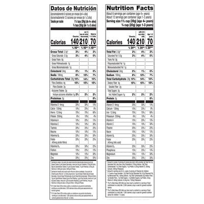 Toasted whole grain oat cereal. No artificial flavors. Per 1-1/2 Cup Serving: 140 calories; 0.5 g sat fat (3% DV); 190 mg sodium (8% DV); 2 g total sugars. Gluten free. American Heart Association Certified: Meets criteria for heart-healthy food. Can help lower cholesterol (Three grams of soluble fiber daily from whole grain oat foods, like Cheerios cereal, in a diet low in saturated fat and cholesterol may reduce the risk of heart disease. Cheerios cereal provides 1.5 grams per serving) as part of heart healthy diet. 34 g whole grain per serving. At least 48 g recommended daily. Good source of calcium. Good source of fiber. With 11 vitamins & minerals. See nutrition facts for As Prepared information. Not made with genetically modified ingredients (Trace amounts of genetically modified (also known as genetically engineered) material may be present due to potential cross contact during manufacturing and shipping). No artificial colors. A whole grain food is made by using all three parts of the grain. From our heart to yours. 100% whole grain oats your heart will thank you for. These little Os are circular dynamos with soluble fiber that can help lower cholesterol as part of a heart healthy diet (Three grams of soluble fiber daily from whole grain oat foods, like Cheerios cereal, in a diet low in saturated fat and cholesterol, may reduce the risk of heart disease. Cheerios provides 1.5 grams per serving). Thanks for that, whole grain oats! Or just think of them as a delicious start to your day. Either way, it’s 100% oat-loving awesomeness. This package is sold by weight, not by volume. You can be assured of proper weight even though some settling of contents normally occurs during shipment and handling. how2recycle.info. generalmills.com. We welcome your questions and comments generalmills.com; 1.800.328.1144. Box Tops for Education: Download the app. Scan your receipt. Earn cash for schools. Proud sponsor of Celiac Disease Foundation. celiac.org. Certified 100% recycled paperboard.
