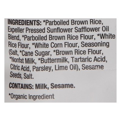Thick and crunchy. Gluten-free. Made with whole grain. Made with organic grains. Whole Grain: 16 g or more per serving. Eat 48 g or more of whole grain daily. wholegraincouncil.org. CCOF: California Certified Organic Farmers. Certified organic by CCOF. Organic is non-GMO or more. Non-GMO Project verified. nongmoproject.org. Package is sold by weight not volume. Contents may settle during shipping. Savor the taste of toasty brown rice seasoned with the bright flavor of zesty lime. Lundberg Rice Chips are carefully crafted to deliver thick, crunchy, whole grain goodness that holds up under your favorite salsa. So dip in, crumble them atop soups and salads, or enjoy Rice Chips straight out of the bag! www.lundberg.com. Facebook. Instagram. Twitter. Pinterest. YouTube. TerraCycle: Recyclable through the TerraCycle program. Visit www.terracycle.com to find out how. Better the World with Every Bite! Since 1937, our family has been growing wholesome, great-tasting rice while tending to soil, air, water, and wildlife as carefully as our crops. Some people say we’re a hit unconventional. But doing things our way-sustainably at even step-allows us to make better food for your table while leaving better world for us the next generation. That’s why we say no to GMOs, build soil health, and provide habitat for hundreds of species. For more our story, please visit www.lundberg.com.