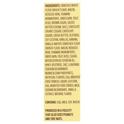Naturally and artificially flavored. Est. 1996. 4 large soft-baked cookies. Real chocolate chunks. Bakery-inspired recipe. A bite of whimsical delight: Once upon a time there was a bakery on a cobblestone corner in New York city where people would wait all day for a bite of the city's most famous desserts. And we realized we had to take this show on the road. Cut to today. You're holding a box of soft-baked cookies made with real butter and bananas inspired by our iconic banana pudding. Once an only NYC treat has become an anywhere eat. We hope you enjoy! Start with real pureed bananas. Mix in vanilla wafers. End with a delightful scoop of dark chocolate chunks. magnoliabakery.com. (at)magnoliabakery. Questions? Comments? hello(at)magnoliabakery.com.