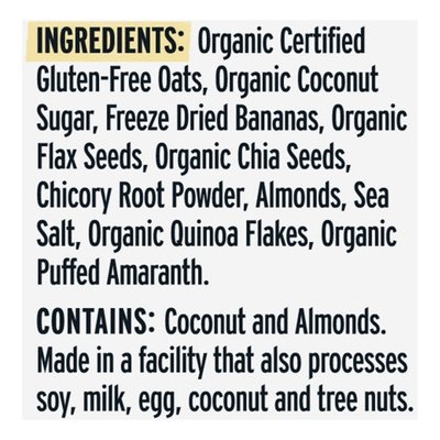 No artificial or natural flavors. Vegan. Certified gluten free. gfco.org. Certified Organic by: ISDA. Non-GMO Project verified. nongmoproject.org. Non-GMO. Elizabeth: Created to help you thrive. The Purely Story: As a certified holistic nutrition counselor, I believe that nutritious food has a powerful effect on the body. When you eat better, you feel better. I started Purely Elizabeth to make food full of nourishing ingredients and delicious, culinary taste to help you thrive on your wellness journey. Enjoy! - Elizabeth, Founder & CEO. Full of The Good Stuff: We select each ingredient for its taste, texture and nutrition to create products you will obsess over! Our Superfood Oatmeal blend is made with organic oats, flax and chia and is sweetened with sustainably sourced coconut sugar. Our Purely Guarantee: Don't love it? Send us an email at support(at)purelyelizabeth.com. purelyelizabeth.com. Scan for recipes + exclusive rewards! Facebook. Pinterest. Instagram. Certified B Corporation. Woman owned. Love Our Oatmeal? Try our Ancient Grain or Grain-Free Granola! Please recycle.