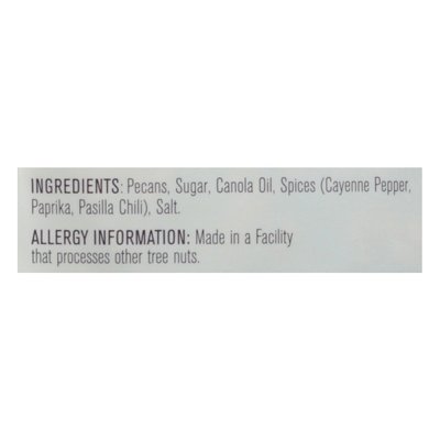 Heat & sweet in perfect harmony. Gluten free. Peanut free. No cholesterol. No trans fat. Non GMO Project verified. nongmoproject.org. Non-GMO. Celebrate life every day. Pure cane sugar gives these mammoth pecan halves a touch of sweet that perfectly complements the gusto of the cayenne, ancho and paprika. It’s crunch time! At Sante, we think nuts are pretty much perfect when they come off the tree. That’s why we are passionately picky about every ingredient we put in this package and everything we do to drive up the crunch. We choose only the very best nuts and roast them by hand in small batches using a secret method that our family developed. (This is what makes them perfectly crunchy). Each nut is then lovingly seasoned with pure, all-natural ingredients. (This is what makes them exceptionally tasty). So treat yourself. Share Sante nuts with family and friends. Create something special. And celebrate life every day. All natural - always! www.santenuts.com. Is this bag empty? We knew you'd love them. Get more tasty flavors - and recipes! at www.santenuts.com. Manufactured in USA.