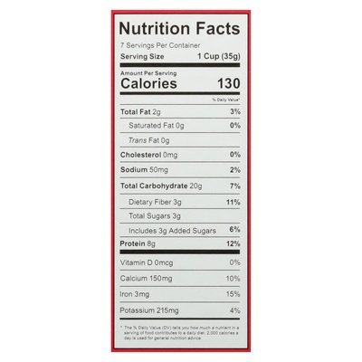 Three Wishes: 8g protein, 3g sugar, grain free. Vs. Leading fruity flavored cereal (based on 35g serving size): 2g protein, 11g sugar, grain based. Gluten free. Certified gluten free. gfco.org. Peanut free. Vegan. No wheat. No dairy. No soy. More protein. 4x more protein than the leading fruity flavored cereal (our cereal contains 8g protein per 35g. The leading fruity flavored cereal contains 2g protein per 35g). Less sugar. 70% less sugar than the leading fruity flavored cereal (our cereal contains 3g sugar per 35g. The leading fruity flavored cereal contains 11g sugar per 35g). No rice. No oats. No corn. Non-GMO Project verified. nongmoproject.org. Wish, granted. They say good things come in threes. As luck would have it so did we - and then we had Jonah and things got even sweeter. Our family wished for a cereal that everyone in the house could love. Imagine a tasty cereal that's a good source of protein and is made with wholesome ingredients. Until now, most cereals have been made from grains. We had a different vision - one that uses nutrient-rich, plant based ingredients. Although it took a little more than just wishing, the cereal of our dreams is here. Margaret. Ton. Elles and Jount Wishing end The Wishes. Women owned. threewishescereal.com. Scan to have your wish granted! threewishescereal.com Instagram: (at)threewishes. Your curiosity has been rewarded! No one ever comes down here, so since you made it to the bottom of the box, we'll let you in on a little secret. You know how we're called Three Wishes because our last name is Wishingrad and we're a family of three...well, we had another kid. His name is Jonah, he's even cuter than our cereal box, and he was born the same day Fruity was born. No joke, Margaret was on her way to the hospital when she got a call from our factory (yes, of course she picked it up) and Fruity went into production the very same day. How's that for granting wishes? Still curious? Head to bottomofbox.com to hear more of our secrets.