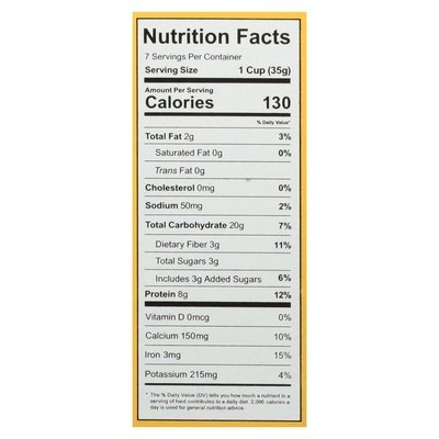 8 g protein per serving. 3 g sugar per serving. Three Wishes: 8 g protein; 3 g sugar; grain free vs Leading Honey Flavored Cereal (Based on 35 g serving size): 3 g protein; 11 g sugar; grain based. Certified gluten free. gfco.org. Peanut free. Vegan. More Protein: 2.5x more protein than the leading honey flavored cereal (Our cereal contains 8g protein per 35g. The leading honey flavored cereal contains 3g protein per 35g). Less Sugar: 70% less sugar than the leading honey flavored cereal (Our cereal contains 3g sugar per 35g the leading honey flavored cereal contains 11g sugar per 35g). No corn. No oats. No wheat. No dairy. No soy. Non-GMO Project verified. nongmoproject.org. Wish, granted. They say good things come in threes - as luck would have it so did we - and then we had Jonah and things got even sweeter. Our family wished for a cereal that everyone in the house could love. Imagine a tasty cereal that's a good source of protein and is made with wholesome ingredients. Until now, most cereals have been made from grains. We had a different vision - one that uses nutrient rich, plant based ingredients. Although it took a little more than just wishing, the cereal of our dreams is here. No rice. Welcome to the bottom of the box! There's not much going on down here, but why don't we tell you the story of honey. Created at the very start of our cereal journey, Honey probably saw the most taste-tests and flavor tweaks (our one-year-old son, Ellis, was our toughest critic). Dreamed up with our vegan friends in mind, our honeyless honey uses natural flavors and organic cane sugar to mimic the delicious flavor of honey while still being totally vegan! All our cereals are 100% non-GMO verified - they're also 100% Ellis verified, too. threewishescereal.com. Scan to have your wish granted. Instagram: (at)threewishes. Head to bottomofbox.com to learn more about our honeyless honey. The wishes women owned.