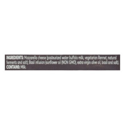 Free range. Grass fed. Mozzarella di bufala. Ciliegine marinated with oil & fresh basil. It begins with the milk. When water bufalas (buffalo) roam free at the foot of the Andes Mountains, they graze on the native grass. Their rich milk yields a fresh mozzarella cheese, with a creamy texture and clean flavor. Cow's milk free. No hormones used.