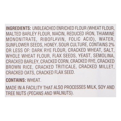 Light crunch with a touch of honey. Non-GMO Project verified. nongmoproject.org. America's favorite artisan bread. ESTD 1989. Fresh baked. Fresh daily. Our Story: When pastry chef Nancy Silverton couldn't find artisan bread good enough for her restaurant, she spent a year crafting the perfect recipe, creating bread with a caramelized, golden crust, soft inside, and rustic appearance. Her signature recipe resulted in such delicious artisan bread that she opened La Brea Bakery on La Brea Avenue. Where there were people lined up outside her bakery every morning, and the bread sold out by 11 am, she knew had a hit. - Nancy Silverton. Toasted Sunflower Honey Loaf: Nutty and delicious, a golden, crisp, the toasted sunflower honey loaf has robust flavor with a touch of honey wheat taste. Whole toasted sunflower seeds add a delightful crunch. www.labreabakery.com. Facebook: Twitter: Instagram: LaBreaBakery.