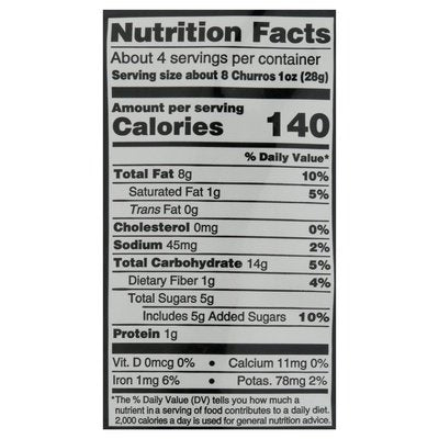 Baked - bite sized - crunchy outside - chocolate flavored filling inside. No artificial flavors. 5 g sugar. Certified gluten free. Gluten free. Soy free. Peanut free. Dairy free. Vegan. Non GMO. Biochecked non GMO verified. Plant based. Now multi grain! Picture of the product has been magnified to show texture. Beyond your expectations! Beyond Churros are a unique delicious and decadent way to treat yourself and your family. Our inspiration is classic churros and chocolate, which is enjoyed in many countries. Traditional churros are made with wheat flour and eggs before they are fried and dusted with sugar and cinnamon. Not ours! Beyond Churros combines the amazing taste of this time-honored favorite with revolutionary plant-based, multi-grain ingredients. We bake them to crunchy perfection and fill them with a creamy, non-dairy chocolate filling for an exceptional snacking experience. So, go ahead and chase your cravings! Baked not fried. www.thedailycrave.com. Follow us on: Twitter. Instagram. Facebook. Visit us at www.thedailycrave.com. Made in the USA of foreign and US ingredients.