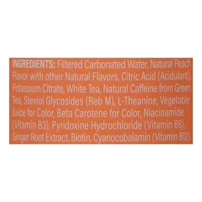 With other natural flavors. No artificial flavors. 0 sugar no way! Yes. In. 5 cals. 150 mg green tea caffeine. Contains 150 mg of caffeine from green tea per 12 oz serving. Gluten free. Vegan. Biotin. B6. B12. Low calorie. Non-GMO Project verified. nongmoproject.org. A beverage with benefits. Crafted by followers & friends. No nasties. No aspartame. Getgorgie.com. (at)getgorgie. Please recycle.