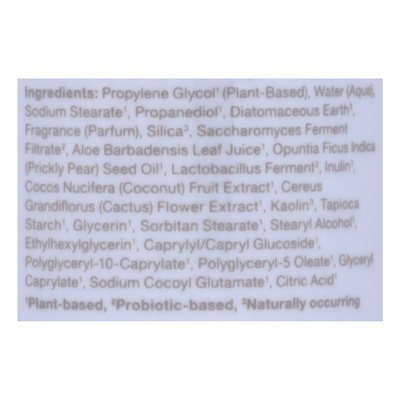 Vegan and gluten free. Aluminum free. Phthalate free. Baking soda free. Feel good. Smell happy. Live supernatural. Plant + probiotic powered. Microbiome approved. Clean and toxin free. Our promise - 100% performance, 0% toxins. Packed with plant powered goodness - like prickly pear and probiotics - we knock out the odor producing nasties with pure skin-food love. Go on, smell awesome and live supernatural. humesupernatural.com. Cruelty free.