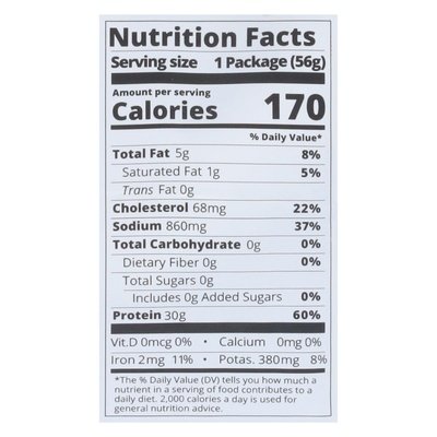 30 g protein. 0 g sugar. 170 calories; 30 g protein; 0 g carbs; 0 g sugar. Paleo friendly. Soy free. Gluten free. Taste the adventure. Hello Biltong, goodby jerky. A centuries old South African tradition of naturally air drying meat, spiced with simple ingredients an then thinly sliced. Imagine a tender cross betwen dry-aged beef, jerky, and prosciutto. Air dried. Our Adventure: Amidst our travels in South Africa to race 175 miles in an ironman and ultramarathon within a week, we experienced the diversity of how Biltong was enjoyed - on the trail, a simple delicious snack, or paired with wine at a vineyard. We'll never go back to jerky and neither will you! US inspected and passed by Department of Agriculture. kalaharisnacks.com. Facebook: kalaharibiltong. Instagram: eatbiltong. Made in the USA.