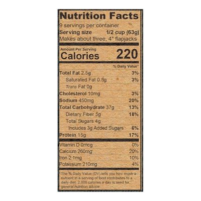 15 g protein per serving. Crafted with 100% whole grain. Protein-packed. Just add water. Restrong with Flapjack tradition. Way back when, lumberjacks and pioneers relied on food packed with protein and essential nutrients from whole grains to get them through long days on the frontier. Though most of us have traded in our axes for laptops, we still crave delicious, nourishing food. Kodiak Flapjack and Waffle Mix is meant for those of us who, like the rugged pioneers exploring the untamed wilderness, require nutrition and great taste to successfully navigate today's frontier. Nourishment for today's frontier. Made with freshly ground grains and no preservatives. Whole grains taste better. Makes 27-4 inch flapjacks. kodiakcakes.com. Instagram. Twitter. Facebook. YouTube. Pinterest. Kodiak started out of a red wagon. Learn our story and join our adventure at kodiakcakes.com. Forage for more recipes at kodiakcakes.com. We can tell you like to get to the bottom of things. Learn more about our story at kodiakcakes.com. Grizzly Bear and Wildlife Foundations: We're committed to keeping the frontier wild for future generations. Your purchase helps us support foundations that protect grizzly bears and other wildlife habitats around the country. Be sure to try our toaster waffles, baking mixes, and oatmeal. Sustainable Forestry Initiative: Certified sourcing. www.sfiprogram.org. Please recycle.
