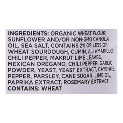 Sourdough bread, aji amarillo chile, makrut lime leaf. No artificial flavors, dyes or preservatives. Vegan. Sourdough bread nothing artificial vegan friendly. Non-GMO Project verified. nongmoproject.org. All natural. Real bread makes real croutons. No artificial dyes or preservatives. Poco Picante: No need to call the fire department. Our crouton homage to the chile limon chip is a little spicy, a little tangy and 100% irresistible. Perfect for salad (taco salad MVP), soup, snacking and so much more. Salad. Soup. Snack. Breadcrumbs. Eggs. Crushed on tacos. Hummus. Feed the birds. Bread is Joy: We're two brothers obsessed with bread. While other kids screamed for ice cream, we begged for a beautiful crusty sourdough loaf (thanks, (at)mom). Now we bring that same excitement to every bag of Kooshy croutons. Starting with the highest quality ingredients, we make a delicious loaf of real sourdough bread. Then we lovingly cut, season, and bake it once more to get that perfect crouton crunch-after all, bread is joy! kooshy.com. Follow us pleeease: Instagram: (at)kooshy. Tik Tok: (at)kooshycroutons. Twitter: (at)kooshycroutons.