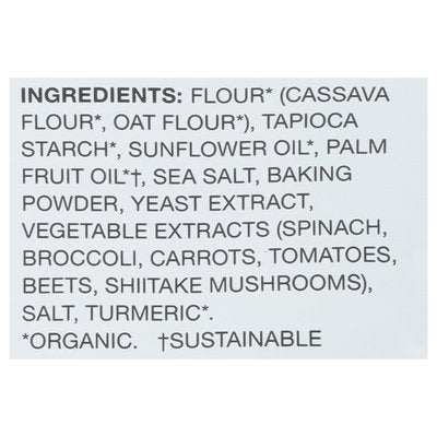 USDA Organic. Certified gluten free by GFCO. Certified vegan. Vegan.org. Allergy friendly. Dedicated facility free from the following common allergens: peanut, tree nuts, wheat & gluten, soy, dairy, egg, sesame, fish & shellfish. Certified Organic by Pro-Cert. Non-GMO Project verified. nongmoproject.org. New! Contains nutrients from vegetables. Sea salt. Nutrition from vegetable extracts. We believe that good food is for everyone. This is why we source organic ingredients and bake our delicious snacks in an allergen-free facility. We work hard as a company to put sustainability first to support our environment. It takes rigor to rewrite the rules, but the future is worth it. Happy snaking! Nima, Sahba, Salma. Vitamins from vegetables. What makes this a MadeGood product? Made in a dedicated peanut and tree nut free facility. Made with whole grains. www.madegoodfoods.com. Product of Canada.