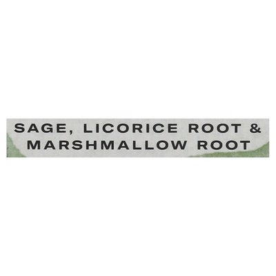 Herbal Supplement. Planted based tea wrappers. USDA Organic. Certified Organic by QAI. Caffeine free. No caffeine. Non GMO Project verified. nongmoproject.org Protective envelope made from renewable, non-GMO eucalyptus and sugarcane. Dry Throat Remedy: A smooth comforting cup. Licorice & marshmallow roots. All real ingredients. Why it Works: Marshmallow root: (Althaea officinalis L.) used historically to moisten and ease sore, dry throat. Licorice Root: (Glycyrrhiza glabra L.), traditionally used to help sore throats due to its demulsifying properties. Sage: (Salvia officinalis L.) aromatherapy in your cup to ground and clear. Climate neutral certified. www.numitea.com. Instagram. Facebook. Twitter. Connect with us (hashtag)drinknumi. Making a Difference: We are a sister and brother who believe in taking care of our global family and this planet we live on. That's why we source the purest tea leaves, herbs and flowers straight from nature, no compromise. By choosing Numi, you've helped empower thousands of people through fair wages, access to education, and clean water. Together, we can create lasting positive impact for people and the planet for generations to come. Join our movement at numitea.com. Together for H2OPE. Certified B Corporation. Printed with soy ink. Eco-Friendly Packaging: Through thoughtful choices, Numi annually conserves: 3,000,000 gallons water. 2,200 million BTUS energy conserved. 3,000 trees. 310,000 LBS. of landfill. Impact estimate from papercalculator.org. Ethically sourced. Please recycle. (These statements have not been evaluated by the Food and Drug Administration. This product is not intended to diagnose, treat, or cure any disease.)