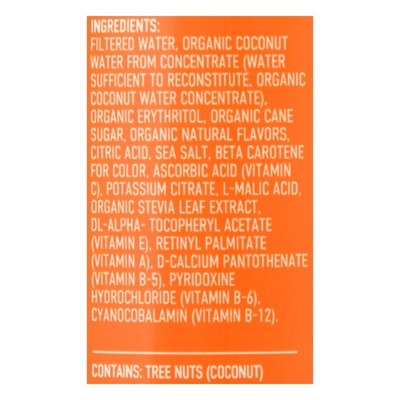 Naturally flavored vitamin enhanced beverage. 3 g sugar per bottle. Gluten free. Vegan. USDA Organic. Certified Organic by QAI. Keto friendly. Complete hydration. Electrolytes: Infused hydration. Vitamins: 100% daily value per bottle. 100%: A; B5; C; B12; E; B6. Antioxidants: From vitamins. Organic coconut water from concentrate. drinkroar.com. More from Roar. Contact Us: info(at)drinkroar.com. Bottle and cap made from BPA free plastic. Please recycle me!
