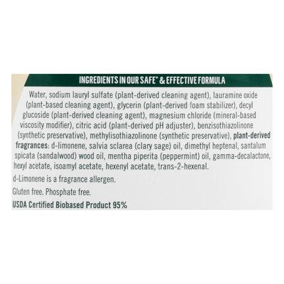 Gluten free. Phosphate free. 0% artificial fragrances. Scents made from 100% essential oils & botanical ingredients. Our formulas, made with plant-based ingredients, can appear cloudy in colder temperatures. This is normal and does not impact how well the product works! Bring back to room temperature (65-70 degrees F/18-21 degrees C) and cloudiness will disappear. Safer Choice: Meets US EPA safer product standards. epa.gov/saferchoice. how2recycle.info. seventhgeneration.com. Smartlabel app enabled. Certified B Corporation. This bottle is made from 100% recycled plastic. USDA certified biobased product 95%. Cruelty-free. Made in USA with U.S. and imported ingredients.