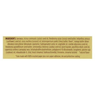 Moisturizing lip balm with responsibly sourced shea. By nature. For nature. For all. This intensely moisturizing, creamy lip balm deeply conditions and soothes dry lips with shea butter and passion fruit oil. 100% natural origin. Formulated without parabens, phthalates, petrolatum or SLS. The shea effect. Supporting Women-Led communities for over 10 years. Burt's Bees has invested in Women-Led shea communities for 10+ years to promote economic independence for generations to come. 5 facilities constructed for shea, beeswax & honey production. 600+ women trained in beekeeping to increase income and shea fruit yield. 8500+ women trained in shea processing and cooperative development. Global Shea Alliance: Founding members of the Global Shea Alliance. 90%+ recycled paper tube (Tube made with 100% recycled papers plus non-paper adhesive, ink and protective coating). FSC - Recycled. Leaping Bunny Certified. Recyclable carton. Made in Canada of global ingredients.