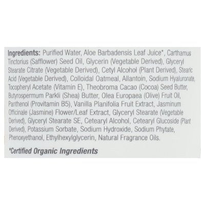 100% vegan. Soy-free. Gluten free. Enhanced formula. Colloidal oatmeal vegan hyaluronic acid. Strengthens and restores. Dermatologist recommended. Ethical Beauty: Clean, effective and dermatologist recommended, we are committed to your skin health, well-being and the natural environment. That's the Derma E difference. No: Parabens, phthalates, formaldehyde, petrolatum, sulfates, mineral oils, artificial colors, artificial fragrances. Simply smooth skin. Enriched with soothing Colloidal Oatmeal, hydrating vegan hyaluronic acid and moisturizing shea and cocoa butter, our dermatologist recommended, ultra moisturizing body lotion is an effective formula that intensely hydrates and conditions dry, thirsty skin. Shea and Cocoa Butters add a boost of intense hydration while jasmine & vanilla extracts help to balance skin's moisture levels. Due to the use of natural ingredients, the color of this product may slightly alter over time. dermae.com. Eco-Ethical. Cruelty-free. Recyclable. Wind Energy (Certificates); Derma E offsets 100% of conventional electricity use with wind certificates. Made in the USA of foreign and domestic components.