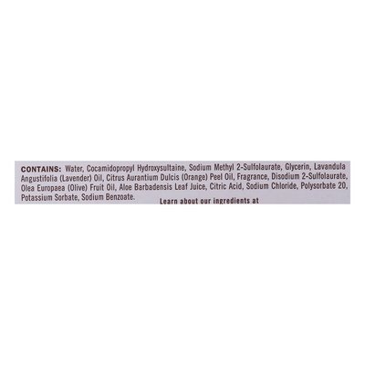 Aromatherapeutic household products creating clean and happy homes since 2001. Tough on dirt and grime. Gentle on your home. Lavender has been valued for years for having a wonderful scent. It is said to relax, soothe & relieve fatigue. All from an herb. Contains olive oil & aloe vera. Made with: Plant derived ingredients; natural essential oils; glycerin; olive oil & aloe vera extract. Made without: Parabens & phthalates; triclosan & formaldehyde; MEA & DEA; artificial colors. Time to go shopping. mrsmeyers.com. mrsmeyers.com/ingredients-glossary. Learn about our ingredients at mrsmeyers.com/ingredients-glossary. Bottles are made with at least 25% post-consumer plastic. Please recycle. Contents are biodegradable. Product ingredients are at least 98% naturally derived. Cruelty free.