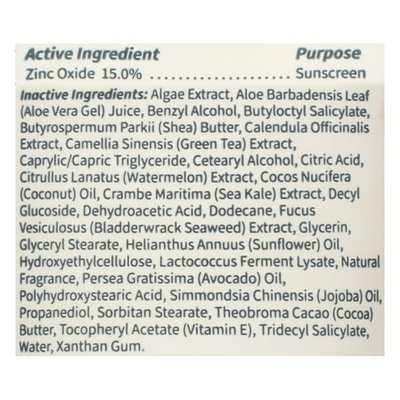 Lotion with probiotics + sea kale. Gluten free. Vegan & cruelty-free. Broad spectrum SPF 40 sunscreen. Everyday mineral. Nutrient-rich seaweed. Water resistant (80 mins). 100% mineral protection for face and body. Hypoallergenic. Ocean-inspired sun care. With natural ingredients. Free: sulfate, paraben & gluten free. Non nano. seaweedbathco.com. Questions? Call toll free 1-877-317-3106. Cruelty free.