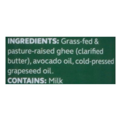 Cooking spray with avocado & grapessed oil. Certified Paleo. Certified Gluten free. gfco.org. This product is Keto Certified. ketocertified.com. Lactose free. Non GMO: Certified by NSF. nsfnongmo.org. Grass-Fed & Pasture-Raised. Fuel happy. 485 degrees high heat. Propellant-free. Amazing buttery taste. Our unique, non-GMO blend of grass-fed & pasture-raised ghee, avocado oil, and cold-pressed, refined grapeseed oil makes for the perfect everyday cooking oil. It has a high smoke point of 485 degrees F and the rich, buttery taste you'd expect from our ghee, but with an easy spray. We carefully blend these oils to enable the properties found naturally in ghee to remain intact. Whole 30 Approved. fourthandheart.com. For more information visit fourthandheart.com.