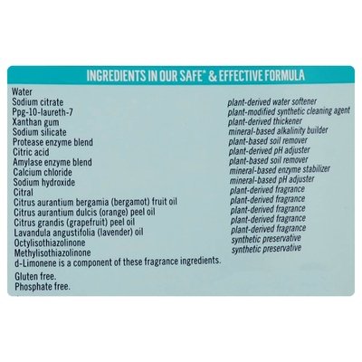Gluten free. Ultra power plus. Micro-scrubbing enzymes. Power through stuck-on food. 0% synthetic fragrances. Dyes. Chlorine bleach. A clean you can trust. Join us in nurturing the health of the next generation. Scents made from 100% essential oils & botanical ingredients. Phosphate free. www.seventhgeneration.com. how2recycle.info. SmartLabel app enabled. Learn more at seventhgeneration.com. Certified B Corporation: Based in Vermont, we're proud to be Certified B Corporation. B Corps are certified to be better for workers, better for communities, and better for the environment. Join us in nurturing the health of the next seven generations. This bottle is made from 100% post-consumer recycled plastic (excluding colorant). USDA certified biobased product 65%. Not tested on animals. No animal ingredients. Made in USA with US and imported ingredients.