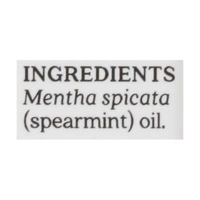 Aura Cacia American-grown spearmint is especially sweet and fresh. Our Promise: Pure essential oils; No synthetics; Tested for authenticity. Use for overcoming a send of stagnation. Goes well with eucalyptus, jasmine, lavender, rosemary. Aroma Note: Leafy top note. www.auracacia.com. Find more recipes & tips at auracacia.com. Not tested on animals. Grown in United States.