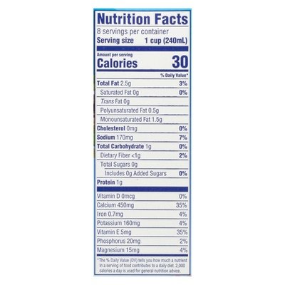 No artificial flavors or colors. Vanilla with other natural flavors. Almond Breeze: 35% DV (450 mg); Dairy Milk: 25% DV (300 mg) (1 cup of regular dairy milk contains 300 mg calcium vs 1 cup of Almond Breeze contains 450 mg calcium). 30 calories per serving. Dairy-free. Gluten-free. Soy-free. Dairy & lactose-free. Egg-free. 50% more calcium than dairy milk (1 cup of regular dairy milk contains 300 mg calcium vs 1 cup of Almond Breeze contains 450 mg calcium). No added sugar. Excellent source of vitamin E. Cholesterol-free (Almondmilk, a cholesterol-free food). No MSG. Non-GMO Project verified. nongmoproject.org. The best almonds make the best almondmilk. Every cup of Almond Breeze is carefully crafted with the best almonds. For over 100 years, our co-op of California family owned orchards has been dedicated to growing the Blue Diamond almonds that give Almond Breeze the delicious, creamy taste you'll love. Ken an Jason Chandler - Grower for 3 Generations. Casein-free. Carrageenan-free. Manufactured at plant stamped on package. All products are produced in a stringent allergen control environment. www.bluediamond.com/sustainability. almondbreeze.com. how2recycle.info. Scan me for an exciting experience! Find us on Facebook. SmartLabel: Scan barcode with SmartLabel app for more information. For more information, please visit us at www.bluediamond.com/sustainability. Questions or comments? Contact Blue Diamond customer support at 1 (800) 987-2329 or support(at)bdgrowers.com. Please include code number found on pack with all inquiries. almondbreeze.com. To learn more, please visit us at www.bluediamond.com/faqs or scan product UPC code for SmartLabel page. How we make a difference: California Almond Growers have reduced their water usage by 33% for every 1 lb of almonds grown. Almondmilk produces 78% less carbon emissions than dairy milk. We partner with Project Apis m. to help honeybees thrive before, during and after the almond bloom. Rainforest Alliance Certified. FSC certification by the Rainforest Alliance benefits the environment and local communities. FSC: Mix - Board from responsible sources. Purchasing this FSC carton from Tetra Pak supports responsible forest management worldwide. Tetra Pak: Protects what's good. Tetra Pak. Tetra Brik Aseptic.