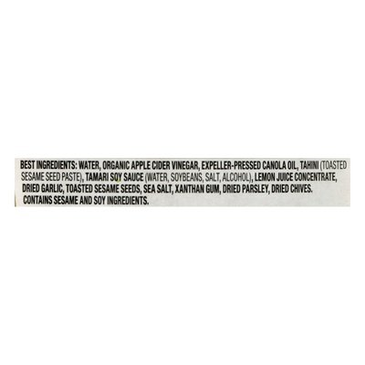 No artificial flavors, colors or preservatives. Vegan. 50% less fat. 50% less calories than our regular goddess dressing (Lite goddess dressing contains 6 g fat and 60 calories regular goddess dressing contains 12 g fat and 120 calories). Non GMO Project verified. nongmoproject.org. We work with trusted suppliers to source only non-GMO ingredients. Made with goodness. Expeller-pressed oil. annies.com. how2recycle.info.