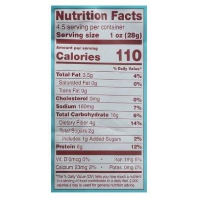 110 calories per serving. 6 g protein per serving. Vegan. Gluten free. Non GMO. Swap 'em in for chips; pretzels; crackers; nuts; croutons. Broad beans with plant-based protein & fiber. Roasted for crunch. Seasoned to perfection. 100% satisnacktion. BadaBeanSnacks.com. (at)BadaBeanSnacks Product of China.
