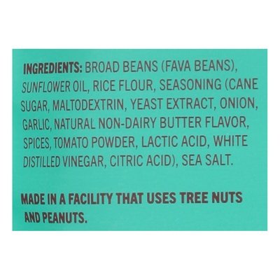 110 calories per serving. 6g protein per serving. Vegan. Gluten free. Non GMO. Swap 'em in for chips; pretzels; crackers; nuts; croutons. Broad beans with plant-based protein & fiber. Roasted for crunch. Seasoned to perfection. 100% satisnacktion. BadaBeanSnacks.com. (at)BadaBeanSnacks. Product of China.