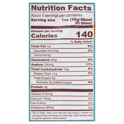 Chickpea, rice & veggie crisps. 40 calories per 10 thins (per serving). 140 calories. Vegan. Gluten free. Non-GMO Project verified. nongmoproject.org. 35 thins. No artificial ingredients. Hi there! This is Poorvi, the Founder of Biena and mom of two. At Biena - our mission is to make snacks that keep you happy and healthy (Contains 7 g fat). Our Tasty Thins are crispy & delicious. Plus-they're made with veggies! With 40 calories per 10 thins (35 thins per serving), you can snack to your heart's content! Poorvi Patodia - Founder & CEO. Biena Snacks. BienaSnacks.com. Check out our backstory. Social: (at)BienaSnacks. Facebook. Instagram. Twitter. TikTok. Questions or just want to say hi? Web: BienaSnacks.com. Email: hello(at)bienasnacks.com.