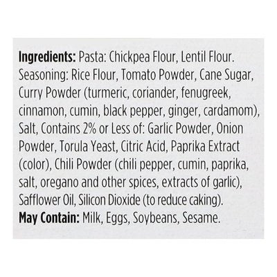 One pot chickpea pasta dish. Creamy tomato curry. 16 g protein per serving! (per 66 g serving). 5 g fiber. 16 g of protein per serving. 5 g of fiber per serving. 12 nutrients from plants per serving. Certified gluten free. gfco.org. Vegan. Non-GMO. Ready in 15 minutes. One pot chickpea pasta dish. 12 Nutrients from plants. 3 Servings. Wholesome, real ingredients. Good with every bite. Wholesome & tasty. chickapea.com. Facebook. Instagram. TikTok. hello(at)chickapea.com. Learn more about our mission at Chickapea.com. For recipe ideas & inspiration chickapea.com. Certified B Corporation. At Chickapea, we believe that everyone should have access to nutritious food. Chickpea adheres to high standards of environmental and social responsibility. With a goal to help mitigate climate change and reduce food insecurity, we purchase and donate organic produce from regenerative farms to low-income communities. Women owned.