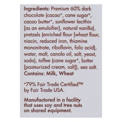 Crunchy mini pretzel and buttery toffee dance in dark chocolate. Free of artificial preservatives; artificial colors & flavors; artificial sweeteners; trans fats. Peanut free facility. Gourmet chocolate experience. Chef: Michael Antonorsi. Est. 2002. Crafted with joy. Do your happy dance. The Experience: We thought that getting swept off your feet & spun around only happens in the movies - until we tasted Pretzel Toffee Twirl. Crunchy mini pretzels paired with buttery sweet toffee in rich dark chocolate-so darn good, you just might dance with a stranger. At Chuao, we say if it's not a chew-wow! My Story: In my 30's I left a tech career in Venezuela to chase my passion for food, all the way to culinary school in Paris. Now, as a chocolatier, I have the privilege of living out my joy by crafting delicious, premium chocolate experiences for you. I hope they make you smile, maybe even giggle, so you'll share the joy too. Together, let's make the world an even sweeter place. With gratitude, - Chef Michael Antonorsi. Master Chocolatier. Signature collection. ChuaoChocolatier.com. Packaged with recycled materials. Fair Trade Certified Ingredients.