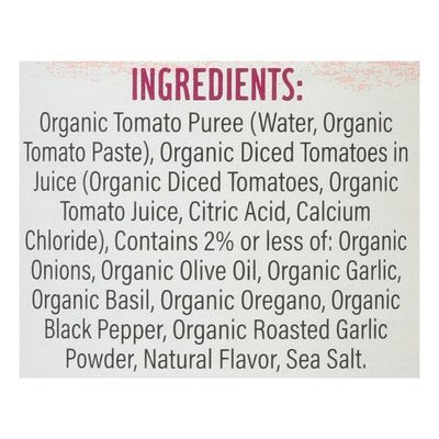 Contains organic ingredientsno artificial colorsno artificial flavorsno artificial preservativesno artificial sweetenersno caffeineno carrageenanno msgno nitratesno palm oilno refined oilsorganics