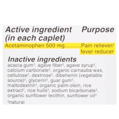 Pain reliever/fever reducer. Certified gluten free. Certified vegan. Vegan.org. Non-GMO Project verified. nongmoproject.org. Genexa - Medicine made clean. How we're different. Made without: FD&C red no.40 aluminum lake, titanium dioxide, propylene glycol & more! Compare to active ingredient in Tylenol Extra Strength Caplets (This product is not manufactured or distributed by Johnson & Johnson Corp., owner of the registered trademark Tylenol Extra Strength Caplets). genexa.com. Questions? 1-855-436-3921. Certified B Corporation. Please recycle. Made in the USA with globally sourced ingredients.