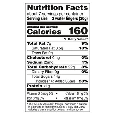 Per 3 Wafer Fingers: 160 calories; 3.5 g sat fat (18% DV); 25 mg sodium (1% DV); 14 g total sugars. Forever gluten free. Certified gluten free. gfco.org. Non-GMO Project verified. nongmoproject.org. They make you feel fancy when you eat them. We're not sure why. Is it the sweet, tanginess of the lemon flavor the delicate wafer crunch? The lovely, light yellow color? It may just remain a mystery. But, do enjoy these gluten free goodies any time you want to feel a little special in your snack time. Always delicious and forever gluten free. glutino.com. how2recycle.info. SmartLabel. Scan for more food information or call 1-800-845-7286. Facebook. Twitter. Instagram. Pinterest. 1-800-845-7286. glutino.com. Made in Israel.