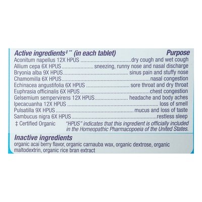 Ages 3+. USDA Organic. Certified Organic by SCS Global Services. Certified Vegan. Vegan.org. Non GMO Project verified. nongmoproject.org. The healthier medicine. Non-drowsy / organic & safe. Cold & cough (These Uses are based upon traditional homeopathic practice. They have not been reviewed by the Food and Drug Administration). Congestion & mucus. Cough & sore throat. Runny nose & Sneezing (These Uses are based upon traditional homeopathic practice. They have not been reviewed by the Food and Drug Administration). Homeopathic. Purer, cleaner & healthier ingredients. The Genexa Pledge: We pledge to deliver the highest quality medicines. All our medicines are made of pure, clean, certified organic and non-GMO ingredients. Genexa medicines maintain the highest standards in manufacturing and are made in the USA with globally sourced organic ingredients. We pioneered the organic technology (patent pending) that eliminates harmful synthetics from our proprietary chewable tablet. Our medicines are free of lactose, gluten, artificial preservatives, flavorings and colors. Genexa was founded on the belief that medicine should not only be effective and unquestionably safe, but that it should be healthy for you and your family. www.genexa.com. Questions? Comments? 1-855-GENEXA-1; hello(at)genexahealth.com. Certified B Corporation: We're also very proud to be a Certified B Corporation using business as a force for good. Sustainable Forestry Initiative: Certified sourcing. www.sfiprogram.org. Please recycle.