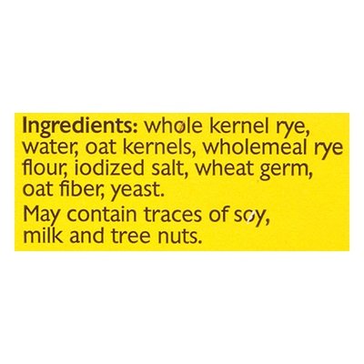 With whole rye, oat kernels and wheat germ. High fiber. Cholesterol free. 50% Whole Grain: 40 g or more per serving. 50% or more of the grain is whole grain. WholeGrainsCouncil.org. Ideal for a cholesterol conscious diet. Freshly ground in our own mill from whole grains. No preservatives. Natural ingredients. Long shelf life. Keep fit for life. www.carlbrandt.com. www.mestermacherde.de. Connect with us on facebook via http://www.facebook.com/CarlBrandtUSA. Product of Germany.