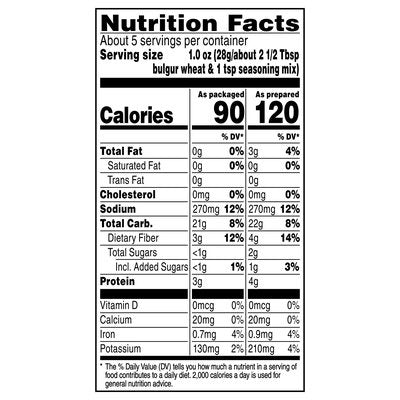Per Serving: 90 calories; 0 g sat fat (0% DV); 270 mg sodium (12% DV); less than 1 g total sugars. At Near East, we're inspired by how well the world eats. Our journey began 50 years ago with a single, homemade Armenian rice pilaf recipe. Today, the brand has expanded to a family of hearty grains, blended with vibrant spices and herbs from across the globe. Our simple yet flavorful dishes provide creative inspiration for any meal. Package contains empty space to accommodate grain to seasoning ratio. This package is sold by weight, not by volume. Contents may settle during shipping and handling. Neareast.com. SmartLabel: Scan for more food information or call 1-800-822-7423. We’re here to help. Neareast.com or 800.822.7423 Please have package available when calling.