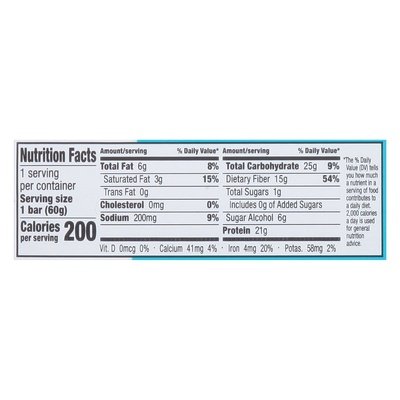 Naturally flavored protein bar. 21 g plant protein. 1 g sugar. 4 g net carbs (25 g carbs - 15 g fiber - 6 g sugar alcohol = 4 g net carbs). Gluten free. Vegan. Soy free. Dairy free. Certified Gluten free. Keto friendly. Non-GMO. Non-GMO Project verified. nongmoproject.org. nocow.com. Win free stuff! Scan. Follow the revolution (at)nocow.