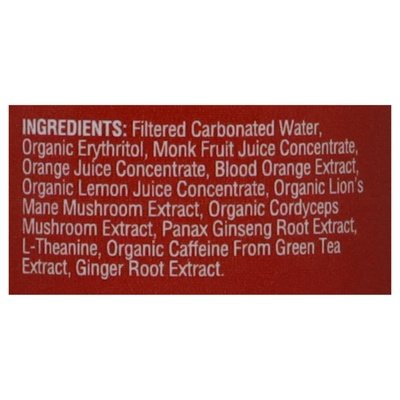 Sparkling orange ginger lion's mane cordyceps. 85 mg caffeine. 2750 mg mushrooms. 6 g Net carbs. Vegan. No Preservatives. Non GMO. Boosts energy, focus & mood. Natural energy without the crash. Mental clarity and focus. Mood boost. Lion's Mane Known as the brain mushroom, it enhances memory, focus, and mood. Odyssey contains 1500 mg of Lion's Mane. Cordyceps Known as the energy mushroom, it supports endurance, stamina, and promotes immunity Odyssey contains 1250 mg of Cordyceps. Green Tea Caffeine Aids in digestion, improves heart and mental health, and regulates body temperature. Odyssey contains 85 mg of Caffeine. L-Theanine Promotes relaxation and mental well-being by reducing mild stress and temporary anxiety. Odyssey contains 85mg of L-Theanine. Panax Ginseng: Helps boost energy, supporting blood sugar, and reducing mild stress. Odyssey contains 100mg of Panax Ginseng. Made with mush love. odysseyelixir.com. BPA-NI. Please recycle.