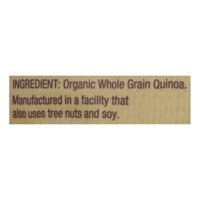 Gluten free. Organic whole grain. USDA Organic. 100% Whole Grain: 47 g or more per serving. 100% of the grain is whole grain. wholegrainscouncil.org. Certified Organic by QAI. Good source of fiber. Sourced Non-GMO pledge. For more information on our sourced Non-GMO pledge, visit bobsredmill.com./non-gmo. An employee-owned company. To your good health. Grains-of-discovery. The traditional grain of the Andes. Bob's Red Mill passport to whole grain adventure. Pre-rinsed and ready to cook. Circa 2000 BC. Tested and confirmed gluten free our quality control laboratory. Dear friends, my lifelong fascination with whole grains has taken me to the far reaches of the globe. On these journeys I have discovered many delicious treasures the mighty grains that nourished the world's greatest ancient civilizations. I call them our grains of discovery, and I've brought their stories home to share with you. Like this story of quinoa. Native to South America, this amazing plant was domesticated thousands of years ago near Lake Titicaca, high on the plateaus of the Andes. It was a mainstay in the diet of the ancient Incas, who considered it a sacred crop. I hope you enjoy exploring the culinary and nutritional wonders of ancient grains with quinoa and all of our grains of discovery. To your good health, Bob Moore. bobsredmill.com. Find more recipes at bobsredmill.com. For information and recipes visit bobsredmill.com. Resealable package.
