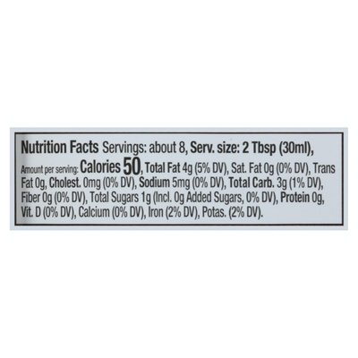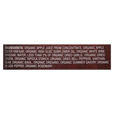 0 g added sugar (Contains naturally occurring sugar). Certified gluten free. USDA Organic. Certified Paleo. Vegan. Certified organic by QAI. No added salt. Not a sodium free food. Herbal with a hint of zest. This vinaigrette is perfect for any salad-deliziosa! Whole 30 Approved. Organicville.com. Find recipes at Organicville.com. EO: Employee owned 100 percent.