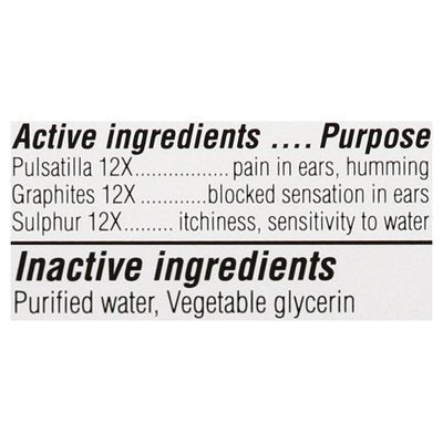 Other Information: Active ingredients are manufactured according to homeopathic principles. No stinging or burning. Relieves ears clogged with trapped water. Natural active ingredients. Homeopathic. Original Swiss Formula. Similasan, trusted for over 40 years in Switzerland. No harsh chemicals. Feel good about feeling better. www.SimilasanUSA.com. Questions? Reach our representatives at 1-800-240-9780 or getinfo(at)similasanusa.com. www.SimilasanUSA.com. Claims based on traditional homeopathic practice, not accepted medical evidence. Not FDA evaluated. Made in Switzerland.